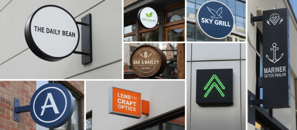 Projecting blade signs that extend from your building for maximum street-level visibility. Perfect for pedestrian-heavy areas.